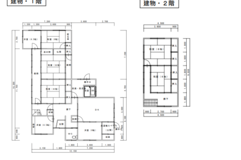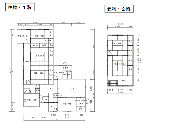 | 間取り詳細 | 1階 居間12畳、台所、風呂、トイレ、和室8畳・8畳・6畳、洋室6畳・4.5畳・4.5畳 2階 和室8畳・6畳 |