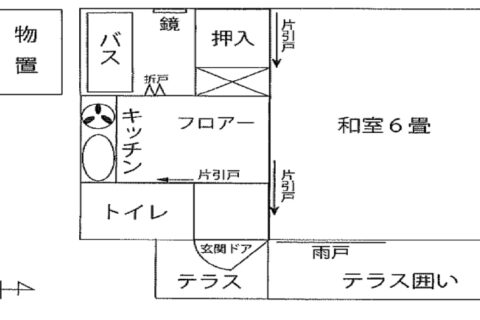 | 間取り詳細 | 1階 台所、風呂、トイレ、和室6畳 | ||