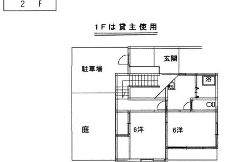 | 間取り詳細 | 2階 台所、風呂、トイレ、ベランダ、 洋室6畳・6畳 | ||