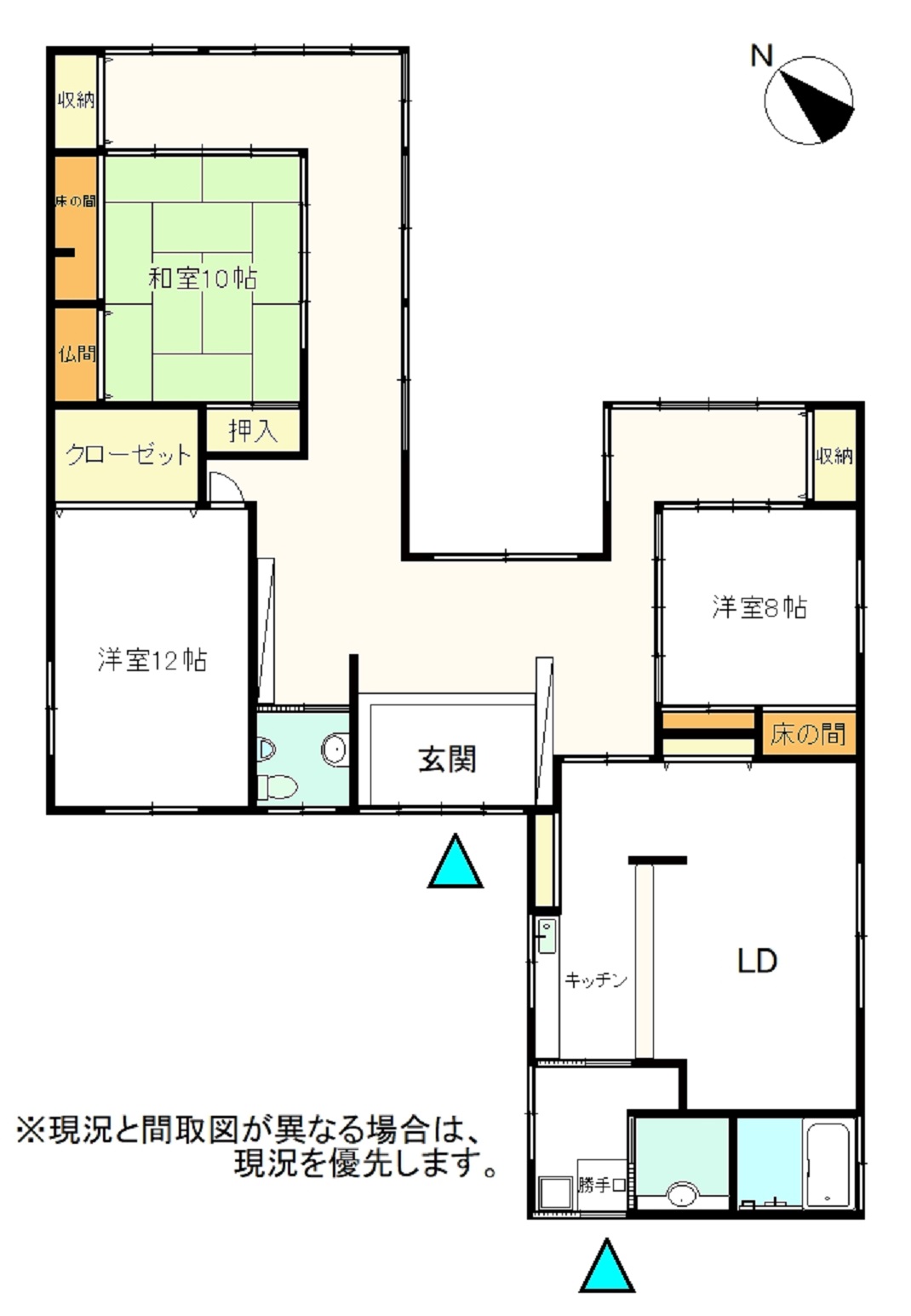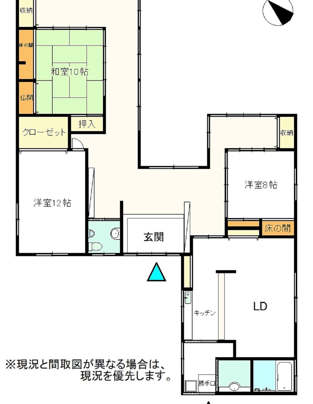 | 間取り詳細 | 1階 居間、台所、風呂、トイレ、 和室10畳・1部屋、洋室8畳・12畳・1部屋 | ||
