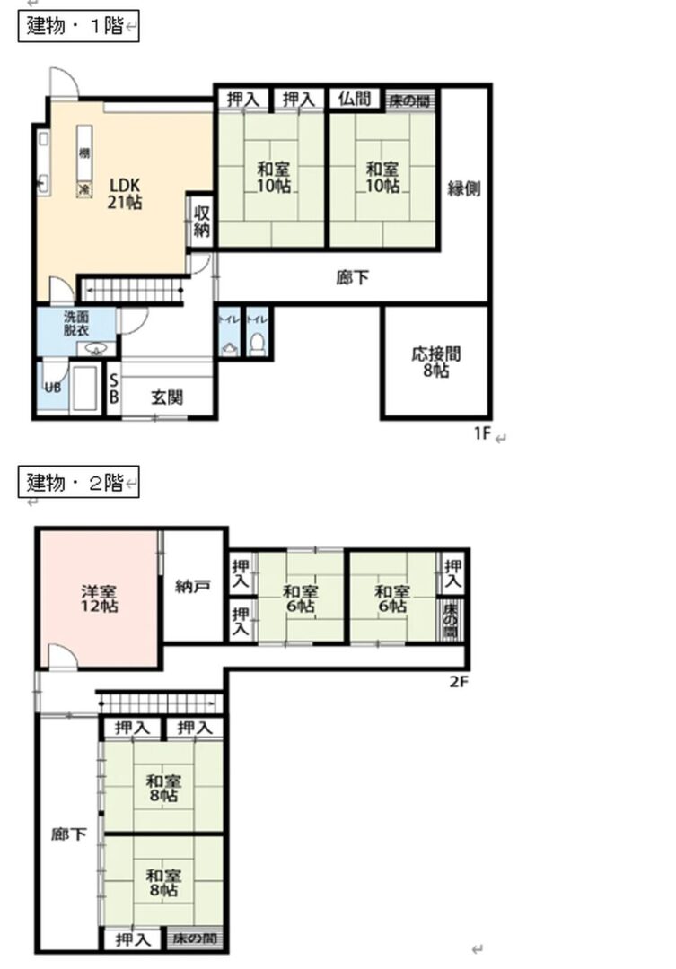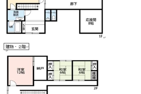 | 間取り詳細 | 1階 居間2畳、台所、風呂、トイレ、縁側、和室10畳・10畳、洋室8畳 2階 納戸、和室6畳・6畳・8畳・8畳、洋室12畳 |