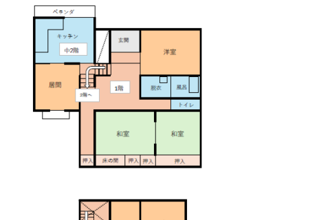 | 間取り詳細 | 半地下 駐車スペース2台分 1階 居間7畳、台所、風呂、トイレ、和室8畳・6畳、洋室6畳 2階 和室8畳、洋室6畳・ 6畳 |